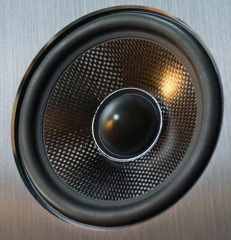 - 1 x 6½″ woofer with woven carbon fibre cone, cast aluminum basket, mass-loaded rubber surround, and advanced motor structure