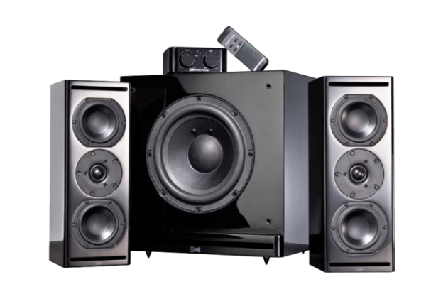 The Studio Monitor 2.1 system consists of two of their CG24 speakers (which can be used either horizontally or vertically), and the Speedwoofer 10 subwoofer. We are big fans of vertical MTM's as the dual mid woofers offer higher sensitivity and output in the critical midrange band compared to a conventional MT two driver design using the same woofer element.