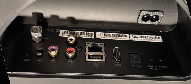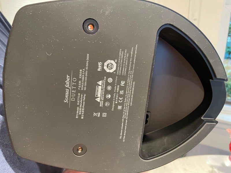 The speakers arrived double-boxed, which is always nice to see, particularly on products that are likely to be sold online through dealers like Audio Advice or Crutchfield. The FedEx journey from North Carolina to my girlfriend’s place in Seattle is about as long as it gets within the USA, and the speakers were no worse for wear. Inside the interior box, each speaker was wrapped in a soft cloth sack and secured in place by thick, custom-cut foam. My review sample came with a Quick Start guide, but no proper user manual. Luckily, a quick web search yielded a PDF user manual on Sonus faber’s website. Physical connections were easy enough. Each speaker plugged into a power outlet, and the primary speaker received an HDMI cable coming from our TV’s HDMI eARC jack. I also used a Toslink cable from Blue Jeans Cable to connect a Wiim Mini streamer to the Duetto’s optical input — more on that later.