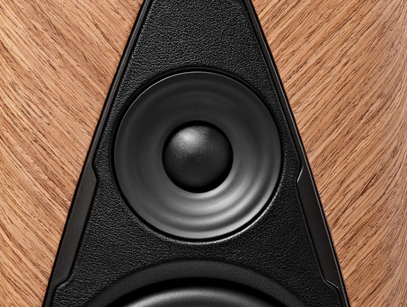 My Duetto preview article describes the speakers’ design, features, and functionality in detail, but I will repeat the salient facts here. The Duetto is a two-way ported design, and its front baffle proudly shows off the 0.7-inch soft dome tweeter and 5.25-inch mid-woofer — unless you choose to cover them with the included magnetic grilles. These aren’t off-the-shelf drivers; they’re custom-designed from scratch by the Sonus faber R&D team in Vicenza, Italy. Sonus faber tells us that the silk dome tweeter is equipped with a ferrite magnet system and a copper cap to “amplify the driver’s emphasis on the lower frequencies while keeping the highest notes smooth and clear.” The tweeter also sits within an integrated waveguide that reportedly increases off-axis response and “guarantees an astonishing listening experience from every part of the room.”