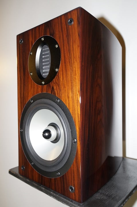 The SV-61R speakers arrived at my doorstep packed fairly well. The box was lined with cardboard edge protectors on all edges. Two thick foam pieces sandwiched the speaker and protected it from shock or deep box punctures. It was covered with a white cotton back to protect it from moisture and scuffs. The speaker itself took me by surprise by the elegance of its finish when I unveiled it. The high-gloss rosewood may be the most luxurious finish on any speaker I have had in my home to date. It was very polished and high-end but without being over-the-top at all. The curvature of the cabinet side-panels made the appearance of the speaker all the more alluring.