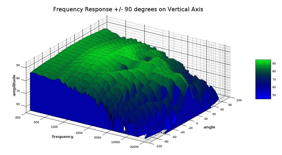 RBH SV-61R Bookshelf Speaker vertical frequency response +/- 90 degrees: 3D view