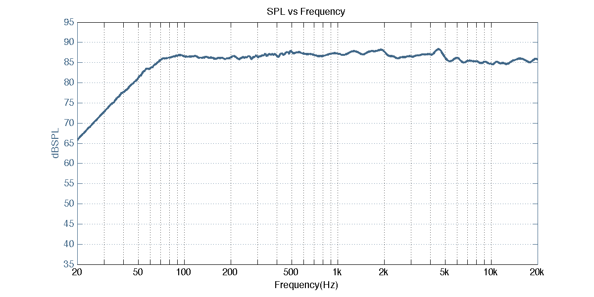 The harmonic distortion graph was generated using a 90dB stepped sinusoid sweep measured at 1 meter. This test is the last test run on a loudspeaker since it really tortures loudspeakers. Since this is a single 6.5” beryllium low frequency driver, the test was run from 45Hz to 20kHz. From 45Hz to approximately 90Hz, substantial air turbulence was clearly audible from the leaky phase plug to cone interface. While this may or may not be audible during normal playback, it is something that definitely is noticeable during testing. The harmonic distortion measurement is average, even compared to some less expensive but well engineered loudspeakers. The audibility of harmonic distortion is a topic of ongoing debate.