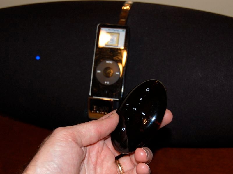 I set the Zeppelin up on our dresser in the master bedroom for the majority of my evaluation period. Included with the Zeppelin is a strange little remote control, which is roughly the size of an egg that has been squashed a little bit. The remote worked pretty well from my bed across the room, allowing me to easily control power, volume, mute, play/pause and track forward or back.