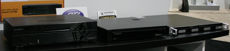 Escient VisionWe reviewed the Fireball a long time ago and thought it was a pretty good (if pricey) product. Escient has raised the bar with their new Vision line that not only saves music on its hard drives but also DVDs. There are two different server/players (VS-100 holds 100 movies, the VS-200 holds 200), a straight server (VX-600) which holds 600 movies, and the VC-1 player which can be used to play content streamed from any of the servers. The VS server/players sport a RAID-1 array for loss protection (the VS-100 has two 500gig drives and the VS-200 has two 1Tb drives) and can stream up to five movies simultaneously. The VX has a RAID-5 array and five 1Tb hot swapable drives for the ultimate loss protection and can stream 10 movies at the same time. The entire line is now a cool black with faint graphics that should have no problems blending into a room. The Vision series will also be compatable with the soon to be released Sony Blu-ray changer giving you access to Blu-ray. The VS will be able to connect to four different changers and the VC can connect to one. The VS server/players cost $3999 and $5999, the VX server runs $7999, and the VC player runs $1999. For more information, please visit Escient.