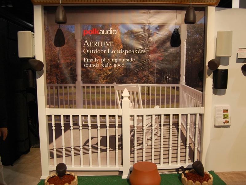 On a more affordable note, Polk was demonstrating their new 2.1 combo designed exclusively for the outdoors. The satellite speakers employ 3-1/2" long throw midrange drivers and a 3/4" dome tweeter in a weatherproof enclosure. They can be mounted on a deck or wall, suspended from a ceiling with a supplied pendant, or driven into the ground with supplied stakes. The downward firing subwoofer looks like a plant stand or pedestal table, and is sturdy enough to be used as either. The 10" long-throw driver is weatherproof and the entire system is built to stand up to every season for years to come. The system was on display and cranking out rock music on the loud show floor, and sounded very good. The Sat30's retail for $179 each and the Sub10 carries a MSRP of $329. For more information, please visit Polk Audio.