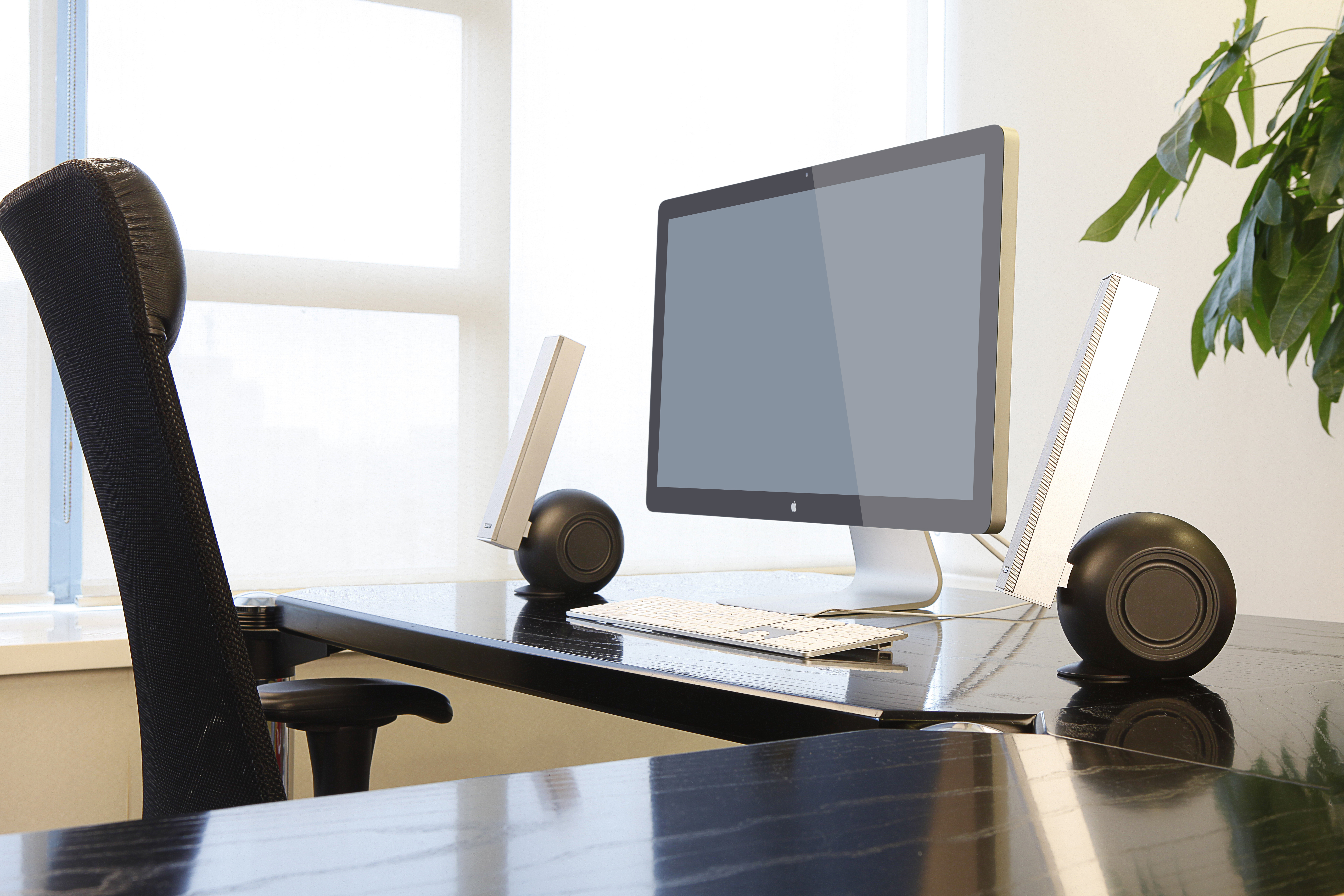 The bottom woofer sphere has a 3" driver mated with a 3" passive radiator. Each of the enclosures have their own amp. All the drivers are magnetically shielded for use near old-school CRTs. The speakers are 4.13” x 12.20” x 7.09” (W x H x D) and clock in at 5.29 pounds. There is a single 3.5mm inputs for connection to your computer/source and no provision for adding a subwoofer. Edifier rates the e10 Exclaim speakers down to 48Hz which should be more than enough for causal listening.