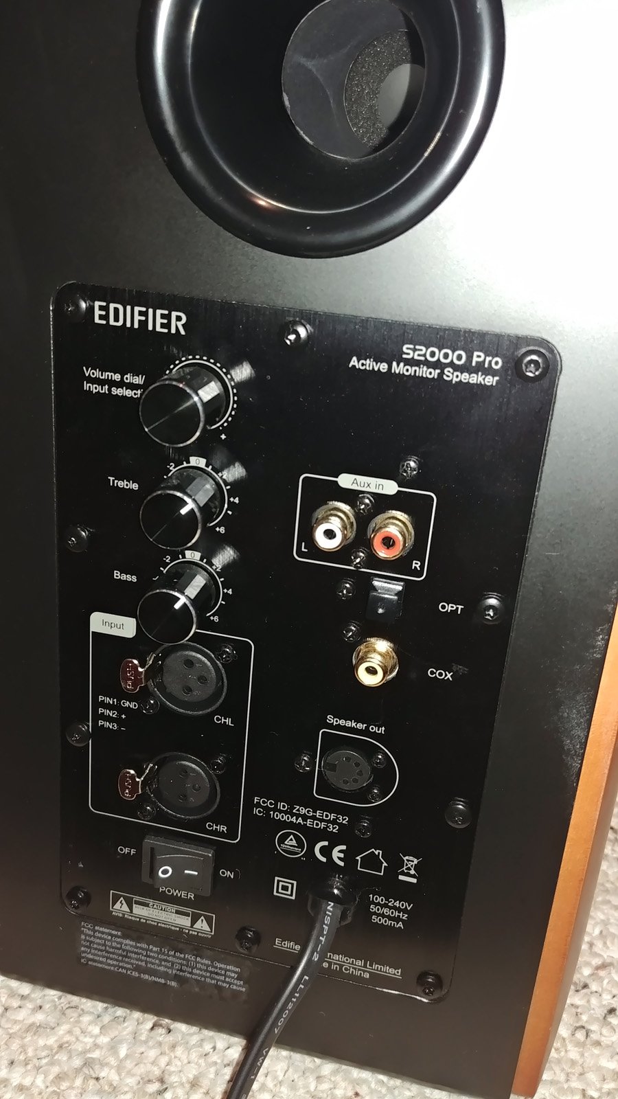 The power cord on the back is not detachable which is a bit of an annoyance to me but not as annoying as the excessively long 5 pin proprietary cable that connects to its mating speaker.  It appears to be about 16ft in length which is a bit long even if you’re placing these speakers in a living room and painfully too long if installing them in a nearfield environment closely spaced together on a desktop.  Edifier should either shorten the length to something more reasonable, say 10ft, or offer an additional 5ft cable option for desktop applications.