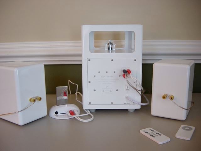 I approached the review with an open mind and a ton of curiosity. But from the minute I opened the box, I found this to be a product of contradictions. First, let's start with the concept of a tube based audio system. High-end, right? It conjures up images of snooty audiophiles sitting in uncomfortable chairs occupying the sweet spot of acoustically treated rooms, listening to overrated jazz music, debating the sonic qualities of tubes and ridiculously overpriced interconnects. But then you say "iPod-based desktop speaker system," and I think low tech, or even computer speakers. At its worst, this can fall into a category I call "Flea Market Audio." So, on the one hand I feel that GINI wants to position this product for audiophiles who have iPods, yet as I began to unpack the system, I started to worry that I should have been looking for the word “DIGITAL” printed in a bad sci-fi font on the box somewhere.