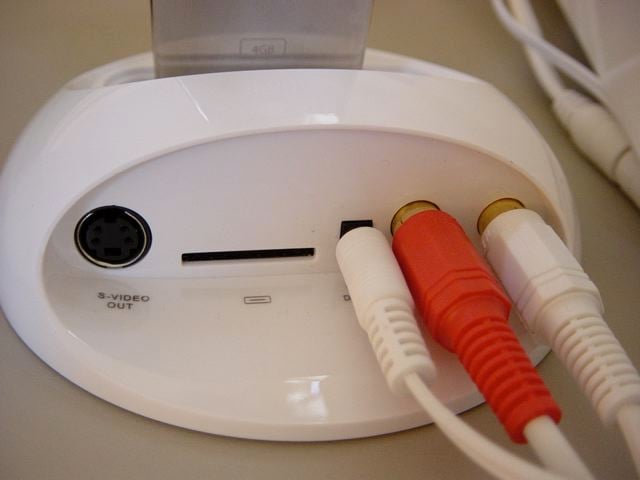 The iConec is a very respectable docking station for your iPod. Connections include RCA left and right channel audio out, a 12V DC power jack, S-Video output, and an iPod docking connector (for use with the USB cable that comes with your iPod). The remote has ample buttons for controlling most iPod functions. Buttons include: PREVIOUS and NEXT playlist buttons, Volume UP and DOWN, PREVIOUS and NEXT album buttons, REW/PREVIOUS and FWD/NEXT buttons, SHUFFLE, REPEAT, BACKLIGHT, MUTE and finally, PLAY/PAUSE. The front of the dock itself has 2 buttons, VOLUME UP and VOLUME DOWN. There is also a small IR receiver on the front.