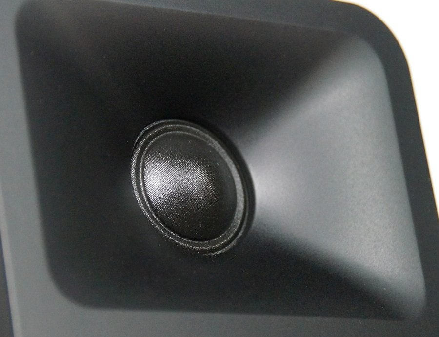 Moving on to the woofer, the ORAs use a 3” paper cone. Such a small woofer size will impose considerable limits in the dynamic range at lower frequencies, but that is why the ORAs have a subwoofer output. The good news about such a small woofer is that it should be able to play up to very high frequencies without worry about break-up modes. Break-up modes are where the transducing surface begins to bend and flex when it oscillates faster than the stiffness of the material can hold a constant shape. Smaller woofers will be able to play out to higher frequencies before break-up modes become a problem. In typical full-size bookshelf speakers that have 5.25” to 6.5” woofers, these break-up modes can become a problem above 3kHz if they are not filtered out properly, but a 3” cone should be able to play out to around 5kHz with no problem. This gives Kanto a lot of flexibility in selecting the optimal crossover frequency because the dome tweeter ought to have no problems playing well below that frequency.