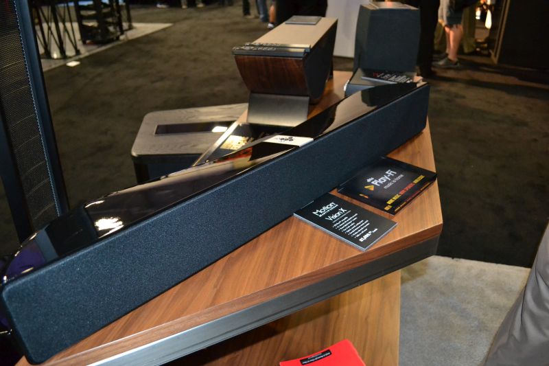 The Motion Vision X has three Folded Motion tweeters, four 4-inch woofers, and seven amplifiers with a total system power of 100 watts. As for streaming, it supports Play-Fi but not AirPlay. It also sports digital optical, digital coax, analog stereo, and Ethernet inputs. A brushed aluminum metal accent on the top of the unit, improved 5-button on-board navigation, and full size extruded black-aluminum remote round out the improvements over the original Motion Vision.