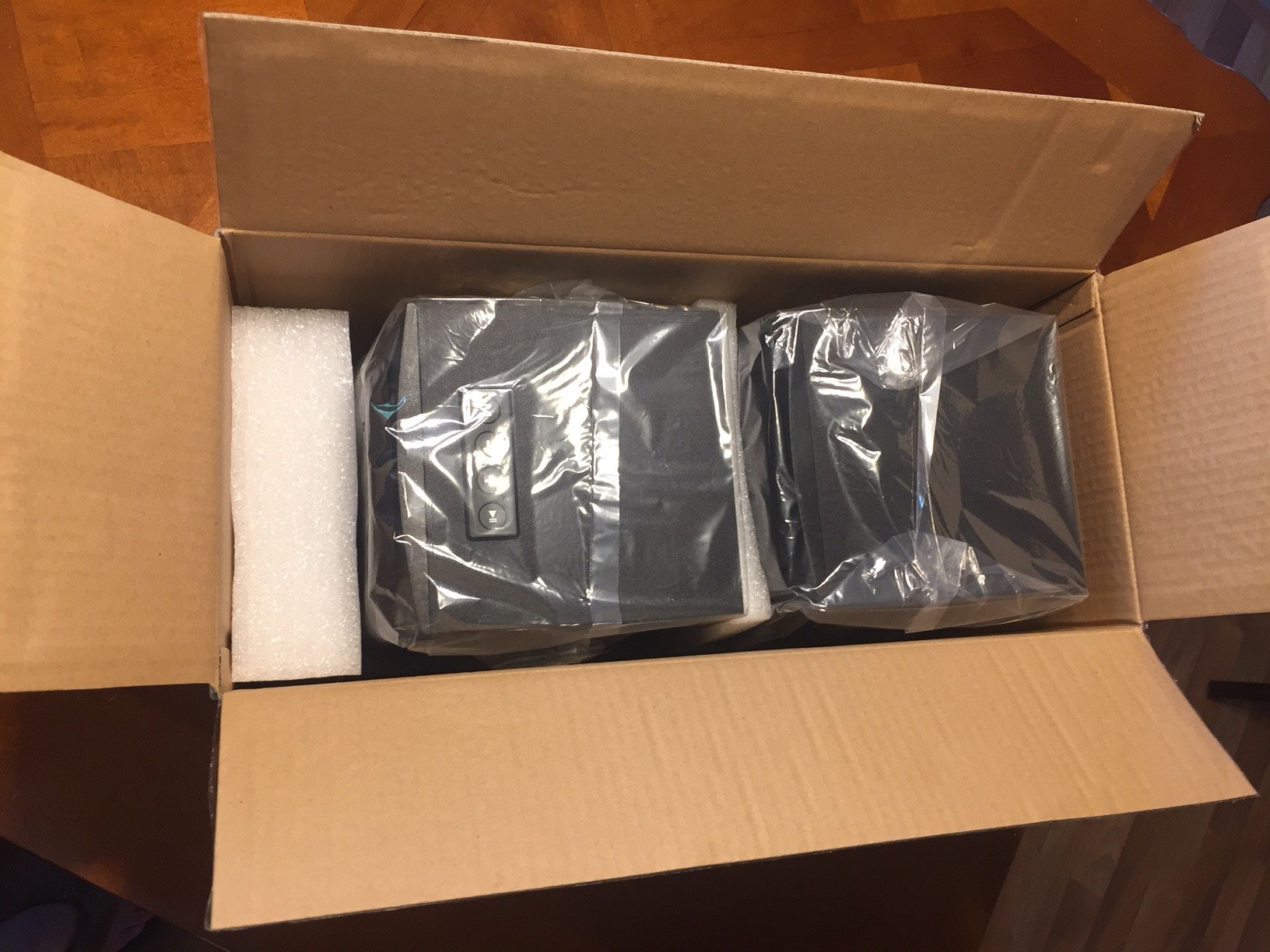 The speakers arrived double boxed with air filled cushioning bubble wrap in between each box layer. The inner box contained both speakers which were wrapped in plastic bags and nestled between Styrofoam inserts. Also supplied is a decent gauge 6’ speaker cable to run from the slave speaker to the powered speaker. Definitely above the quality you would expect from a $100 pair of Bluetooth speakers. Also supplied is a 5’ AUX cable in case you need to plug into a 3.5 mm port.