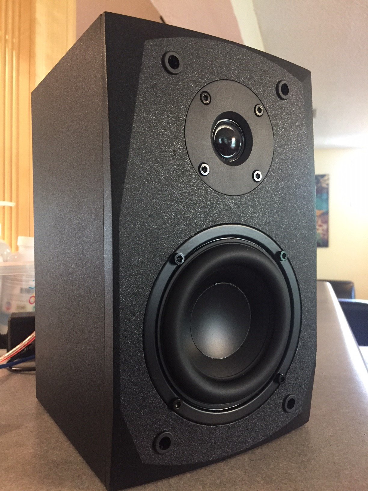 - Woofer: 4" high-excursion driver with a treated-paper cone