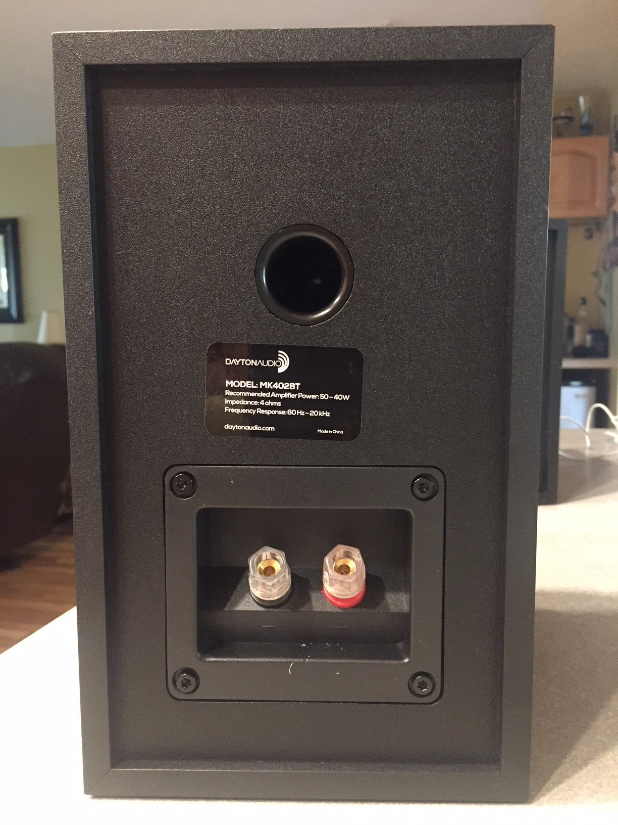 A reasonably hefty gauge speaker wire is included with the pair and high-quality binding posts are used to connect the speakers which give the option of beefing up the gauge for longer than a 10’ run. I knew from previewing these speakers that these would be a tethered pair, but I checked again and nowhere on the Dayton Audio webpage does it say this. Buyers should be aware (or beware) that the second slave speaker is a wired version of the original that needs to be tethered to the master speaker. Not that this is necessarily a bad thing, many wireless stereo pairs of speakers I have reviewed have had difficulties playing true stereo sound from one wireless speaker to another without a physical connection.