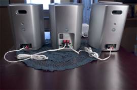 One really nice feature the i-deck has is the 30-pin connector port on the back. When you attach your iPod cable to this port and then to your computer, your iPod will mount and you can manage it with iTunes. This is very handy and turns the i-deck into a massive docking station. The speakers are also threaded for an optional mount, for those who may wish to do so. I was surprised to find that the speakers do not attach to the base and the AC adapter is a separate piece. Overall this is a nice compact unit, but because everything is separate it is not well suited for portability.