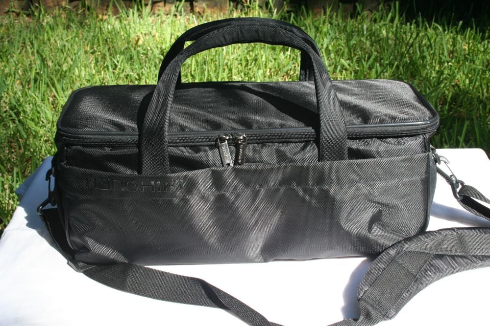 NanoHiFi has released not one but three different portable desktop systems. I call them "portable desktop" because they are technically portable (mine came in a duffel bag that fit it perfectly though there is a carrying strap) though I doubt they will make very many trips outside your home or wherever it is you set it up. The differences between the three systems are price and features. The PNH-1000 has a dock, a USB port, and a radio. The PNH-2100 has all that plus a CD slot. Lastly, the PNH-2200 has everything the others had and can connect to your device via Bluetooth. The model under review is the PNH-2200.