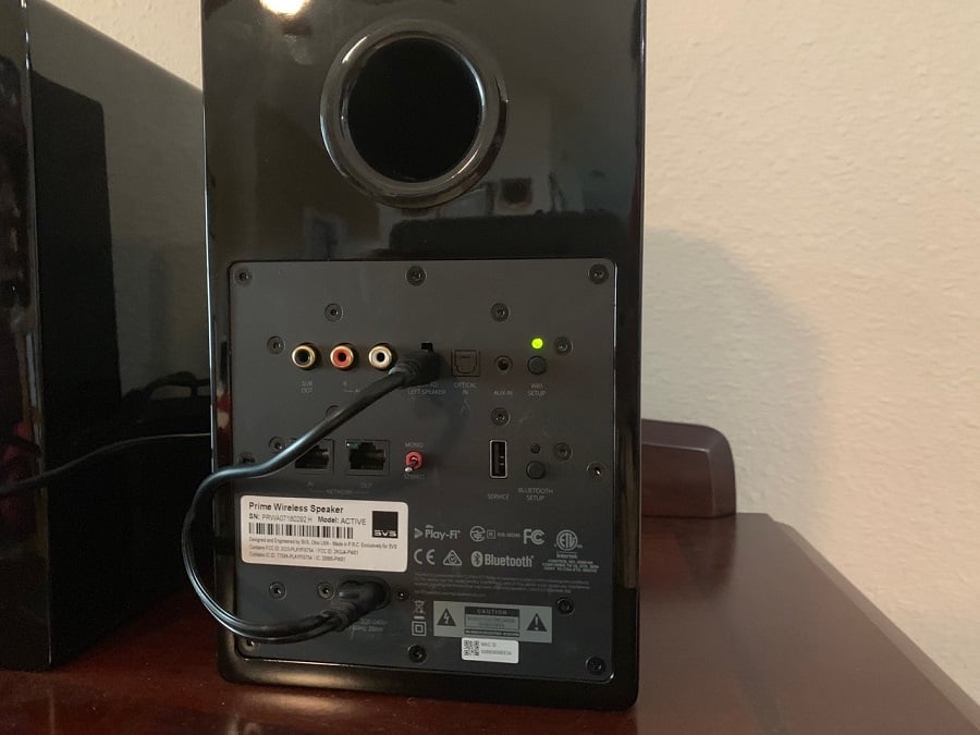 I tested the speakers in a variety of environments and used a variety of the available inputs. However, I could not exhaust all the input options. On an outdoor porch, I placed the speakers 3 feet off the floor on a metal grate shelf approximately 4 feet apart. This location did not allow the testing of the Wi-Fi connectivity due to its location but did allow for Bluetooth connectivity from an iPhone. I chose this spot since I was planning on doing some work and wanted to hear the SVS system in a poor listening environment with lots of background noise and inconsistent reflections off walls. These little guys could really put out the sound.