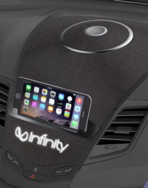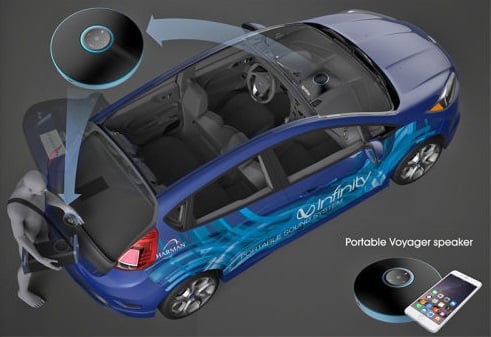 Once you buy a car outfitted with a Harman Voyager in the dash or have the dashboard assembly added aftermarket, you simply pop in the portable saucer speaker, connect your smartphone via Bluetooth and the Harman Voyager is ready to play your favorite tunes through six in dash speakers. Harman’s idea is to get the speakers out of the normal in door setup and place them more at ear level. Let’s face it; my ears aren’t in my ankles, so why should a car’s speakers be low down in the door.