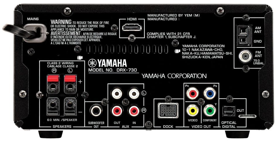 The MCR-730 is given Yamaha's "PianoCraft" designation, and incorporates high quality components, including a high-precision DAC, stable power supply and a low-noise Direct PLL IF Count Synthesizer tuning system. The system's amplifier section delivers a full 60 watts of power to the two-way bass reflex speakers, each of which includes a 4-inch cone woofer and 1-inch dome tweeter, and can also support an optional subwoofer. The speakers are almost ridiculously deep (nearly 12-inches) and may not fit onto some shelves. The advantage, of course, is that they claim a frequency response of down to 10Hz with -3db. 10Hz? We may have to hear (and measure) this to believe it.