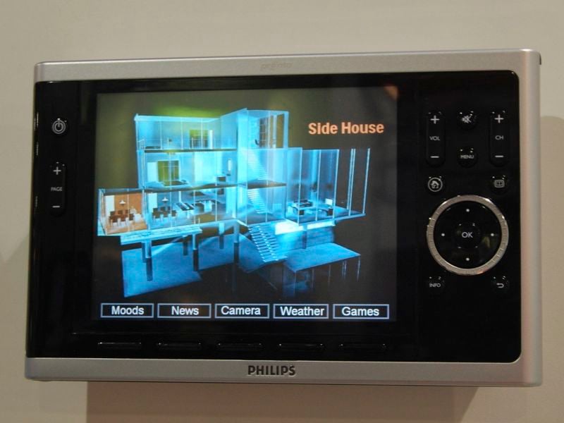 philips prontoNot to be outdone, Philips demonstrated their latest addition to the Pronto line, the TSU9800 touch screen remote.  This unit boasts a massive 6.4" VGA display that is gorgeous.  The unit is WiFi enabled, and meets the growing need for integrated home automation applications such as lighting and climate control.  With this in mind, another great feature of the TSU9800 is option for direct wall mounting, which is useful not only in homes but also in hotels, restaurants and boardrooms.  A high level of reliability is guaranteed thanks to the unique WiFi-based Pronto protocol, which verifies the command and extender availability prior to transmission - which means that it is flexible enough for the most demanding custom installations.  Philips Pronto EditProfessional software features a number of improvements in it's latest version, including improved wizard-based programming efficiency and overall operational reliability.   The TSU9800 can access audio files from any Windows MCE computer.