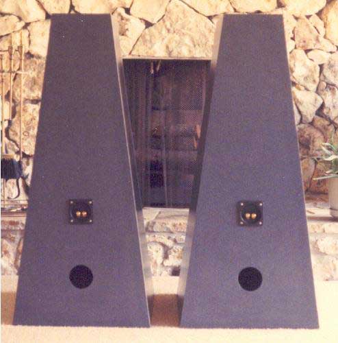 If you haven't noticed, speaker shape has changed in the last 10 or 15 years. They used to be wide with a shallow depth but now they're tall with a narrow width and much deeper. That is because of diffraction of sound on the front surface of speakers; even the thickness of the driver flange can cause diffraction of sound. In order to minimize diffraction I needed to make the surface area around the tweeter and midrange as small as possible, the woofer is not as important because bass is non-directional. B&W Nautilus has optimized this concept by placing the tweeter above the box with no surrounding surface area. I made the speaker front triangular shaped as shown.