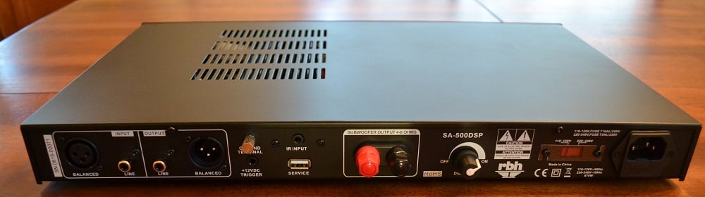 The specific model used in this article is the RBH Sound SI-1010. The SI-1010 measures 13-1/2" W x 42" H x 9" D, so it won’t fit in a wall but will fit between floor joists or roof trusses to be installed in-floor or in-ceiling. It sports dual 10” drivers, is rated down to 28Hz, and weighs a hefty 68 pounds. It was chosen because I wanted a subwoofer that was powerful enough to fill a large room, engineered well enough that I don't have to worry about it breaking down, and that came with a robust amplifier allowing me to really dial in the bass. The instructions covered in this article apply to similar subwoofers from any manufacturer.