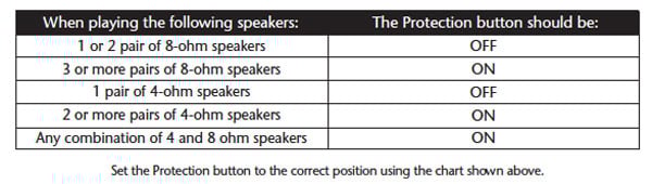 Niles provides a straight-forward chart so users know when to engage the protection circuitry button on their speaker selector models