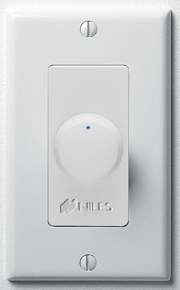 Having a separate volume control give you lots of flexibility and lots of options. For example, you can choose to have a simple manual volume control like the wall dial pictured. However, you can also opt for fancier models. Fancier models will have a push button volume control with a feedback light indicating the volume strength and even have their own remote control. You won't have to get up from your chair to control or mute the volume! In many cases, those fancier models will also act as IR sensors, allowing you to send IR signals back to your main setup. As you can see, there's lots of potential with what you can do.