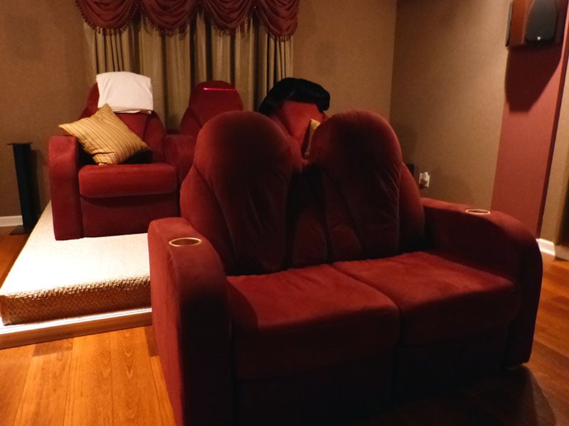 Audioholics Showcase Theater Chairs - (see the laser line on the center back seat)