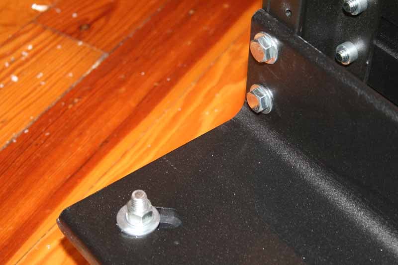 Normally, you'd bolt the entire rack together, putting the top L-brackets across the two side rails and securing the two larger base plates at the bottom. In our case we did this, but as we mentioned, we first took off about 12-inches of each rail, re-drilled new 3/8-inch holes and used new bolts, washers and nuts to secure the top cross pieces to the side rails. We then bolted it down to a dolly, complete with four robust 4-inch casters so we could wheel it in and out of our closet as needed to get at both the front and back of our equipment.
