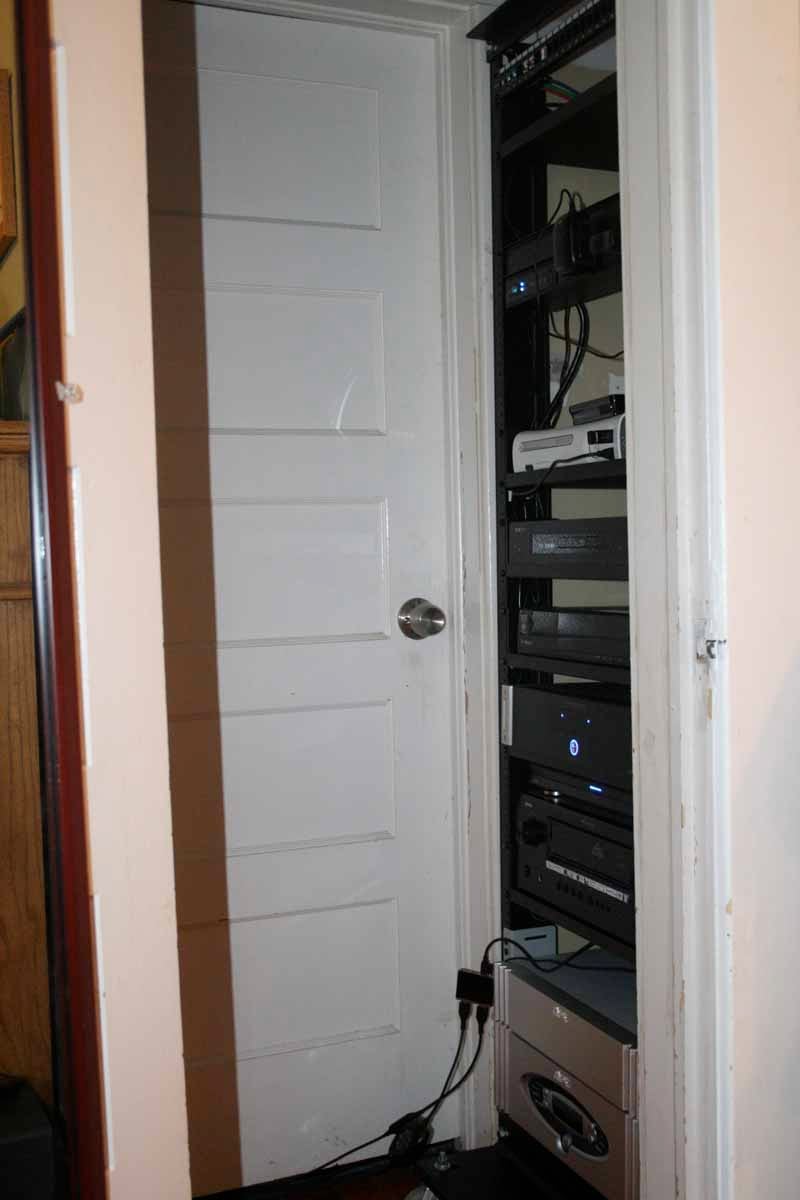 In the end, we found that we could now pull our rack in and out to access the rear panels and make our connections. While, for some, this may be the occasional task, with a product reviewer it's practically a weekly event, if not daily. A relay rack really met our needs in this situation and it was far less expensive to configure than an enclosed, vented rack (not to mention its adherence to our space constraints). Take a look at the profile of our closet with an entire rack filled with equipment: