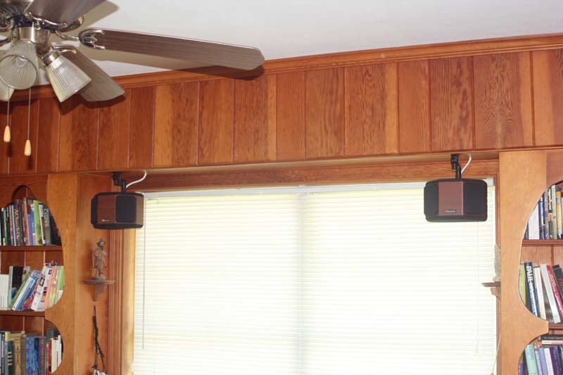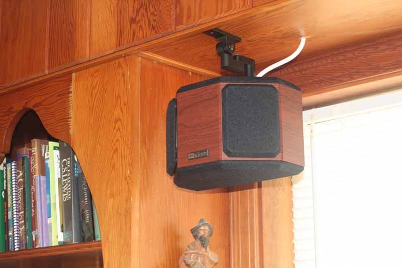 his dad had already mounted the speakers to the ceiling. That just left wire