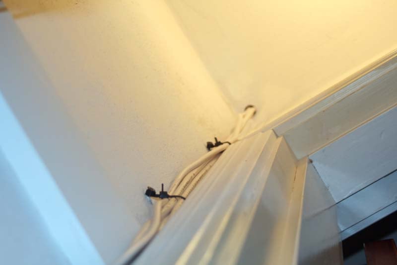 For the fronts and surrounds we simply planned to drill a hole in the ceiling and then route the cables to the tie-line drop point. The surrounds would be slightly more difficult than the fronts since they would come through an alcove which framed out the window at the rear of the room. The job was clear - now we just had to get the cables where we needed them.