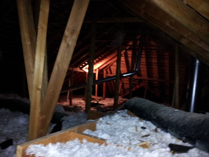 Through the attic or in the basement – If you have an open attic above or unfinished basement below where you are working, then you have it easy. The only advice we can give you is to look for markers in a home (electrical outlets, ceiling fan, etc..) to help you find your way around in the attic or basement. The best method is to get a thin piece of metal, often times called piano wire, and drill it into the basement or ceiling from the main level. Then, when you are in the basement or attic you can find the piano wire and know exactly where you are at. If you are feeling cheap a coat hanger can work as well.