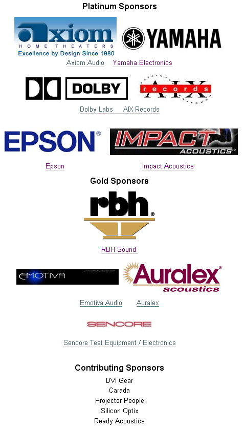 | Time | Event | Axiom | Yamaha / RBH | Emotiva | Dolby / AIX | Education Seminars |