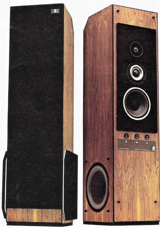 The AR9 was a large floor-standing, vertical, 4-way, 4-ohm loudspeaker with two 12-inch acoustic-suspension woofers, an 8-inch acoustic-suspension lower-midrange speaker, a 1½-inch upper-midrange dome speaker and a ¾-inch dome tweeter. Dimensions were 52 ¾”H x 15”W x 15 13/16”D with a net weight of 130 lbs., and the tower configuration eliminated most room-placement issues found with conventional speaker designs. The crossover frequencies chosen for the speaker were 200 Hz, 1200 Hz and 7000 Hz., well within the safe-operating range of each driver. The AR9 was manufactured from 1978 until 1982, priced initially from $650/each in January 1978 to a high of $900/each at the end in 1982—remarkably modest prices at the time for such excellent performance.