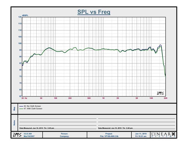 I asked Ian about the losses I experienced (-2dB) using speaker grille cloth at our last floorstanding speaker face off and he informed me that they went through great lengths in designing less lossy grille cloth which they've measured a net loss from 20Hz to 20kHz of 0.7dB (0.5dB at bass frequencies, 1.2dB at high frequencies). As you can see in the measurement above, their grille cloth (even loosely draped) is very transparent.