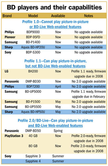 The first of the profile 2.0 film titles hit the shelves in January while many of the current players for sale on store shelves are only profile 1.0 capable and not even profile 1.1 capable.