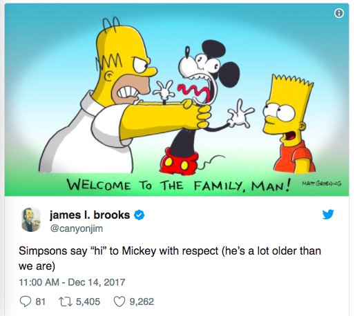 The most humorous response to the news of Disney’s takeover of Fox comes from the notoriously sarcastic Fox staple, The Simpsons. Springfield’s yellow family has loved making fun of Disney over the decades, but what will happen at the Simpson household knowing they’re now employees of the House of Mouse? For starters, Simpsons co-creator James L. Brooks took to Twitter to provide a personalized welcome to the family. It was just too good to pass up as the lead image for this editorial. What will future Simpsons episodes look like? Given the hands-off creative policy Disney has applied to other properties it has acquired, we have to believe there won’t be much change at all. The Mouse will probably take Bart and Homer’s shenanigans, and those of the rest of the Fox family, in good humor.