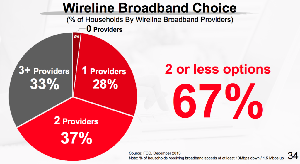 In fact, because of policies that squelch competition (due in large part to the powerful lobby of the communications industry) nearly 30% of US homes only have one choice in broadband Internet service provider.