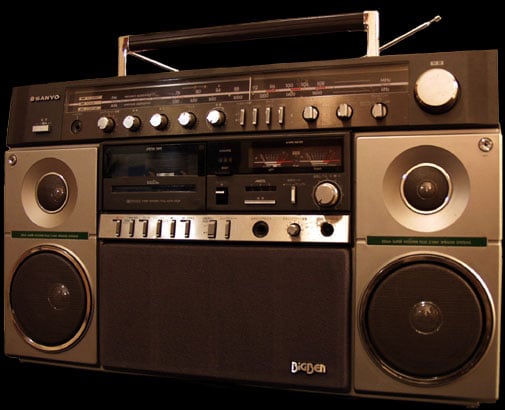 Don't believe me? What kind of products did you see making their way into almost every store in the country... Into movies. Into music videos. They were BIG. They were UGLY. And they were LOUD. Remember when "ghetto-blaster" would not have been deemed a racist term? These fidelity-wrecking devices typically had two paper tweeters, two paper woofers, a couple of cassette decks, AM/FM tuner, graphic EQ and ran on about 16 'D' batteries (for about 1.5-2 hours max if you cranked it up. Kids could be seen walking the streets with these gargantuan distortion-generators on their shoulders pointed directly at their own ears. If they had gotten two and wrapped duct tape around them I suppose these would have been the first hi-fi headphones.