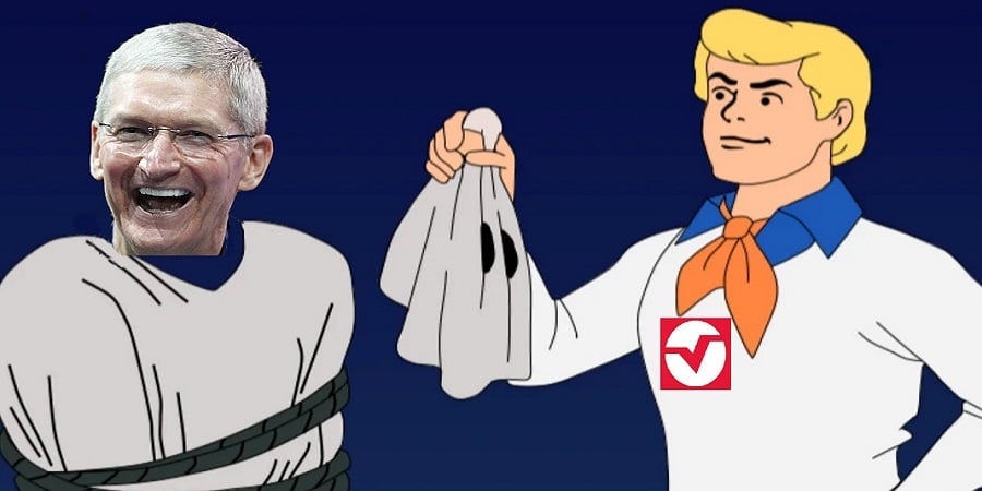 It’s like a high-stakes Scooby Doo episode where the Mystery Machine teenagers pull off the mask to reveal Tim Cook!
