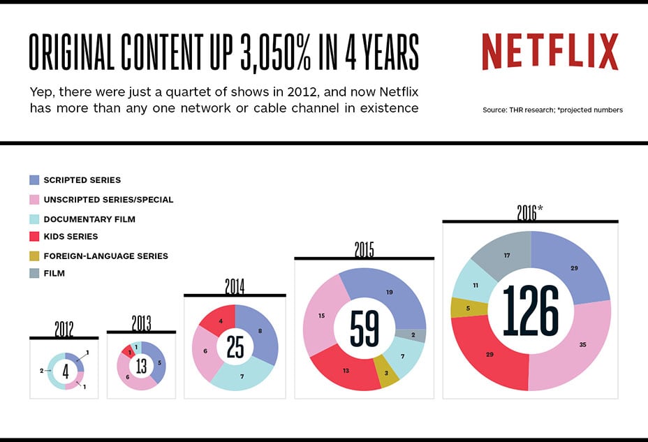It’s difficult to believe that Netflix started life as a subscription DVD rental service. The company that is now known for producing many of the hottest titles on TV, didn’t even begin streaming video until 2007, one year after Amazon launched its on-demand video service. It wasn’t until 2013 that Netflix produced its first original series, aptly entitled House of Cards. Netflix would go on to forever change how we watch TV while spawning a new lexicon consisting of “binge watching” and of course “Netflix and chill”.