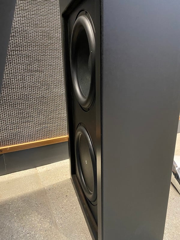 The Dymensions feature a new aluminum oxide tweeter paired with a new waveguide design. The tweeter is offset in a M-T-M array that is symmetrical front and rear. The midrange drivers with upgraded with “Balanced Dual Surround System” (BDSS) which is said to improve pistonic performance with he use of soft rubber surrounds. The Liner Response Waveguide smooths and helps integrate the midrange which also features an upgraded driver. Unlike the prior BP models, the Dymension have equal output on the front and rear arrays but come with a switch to attenuate the rear tweeter by 6dB to provide the “Forward Focus” found in past models. The top of the line DM80 allows the whole rear array to be continuously adjusted. The woofers and likewise new and upgraded with the large larger towers featuring Definitive Technology’s “3XR” configuration consisting of one powered driver paired with two passive radiators. The largest tower used a 415 watt GaNFET design amplifier while the others use a 180 watt MoSFET design. All of the active towers feature “Intelligent Bass Control” which, at first glance, appears to be a gain knob with thirty-one positions. However, each gain position has its own DSP tuning to maximize bass performance. The bass control functions help take advantage of the benefits of having multiple subwoofers.