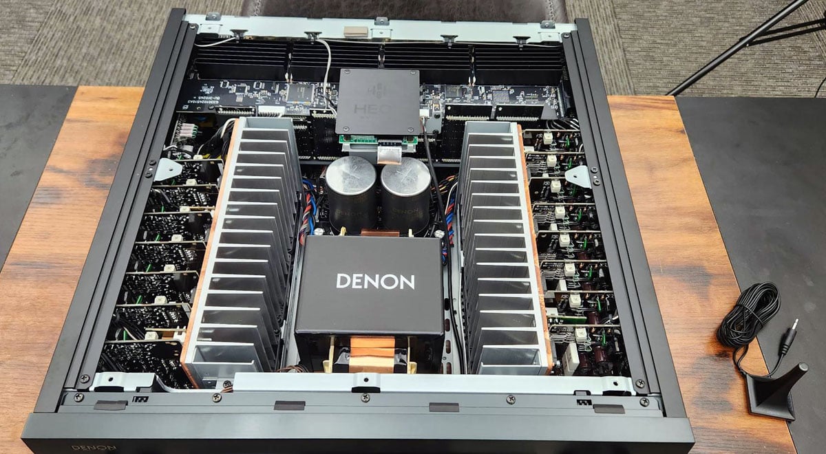 Denon AVR-AH1 15.4CH AV Receiver top cover removed - 25lb transformer 2x 33,000uF Capacitor Bank!