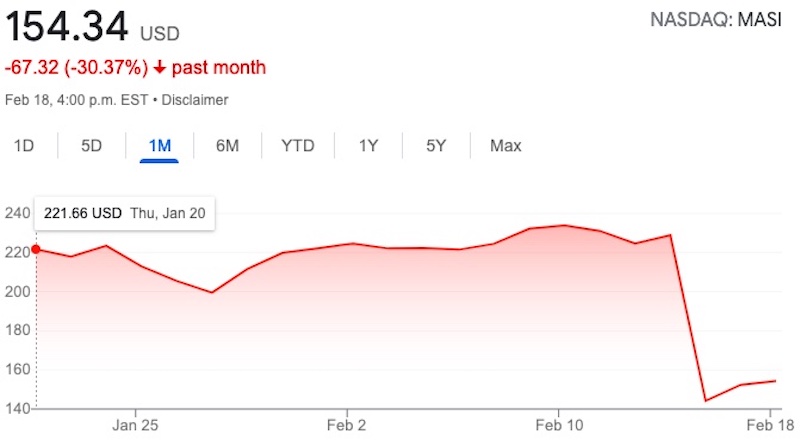 Masimo's NASDAQ listing didn't seem to share Kiani's enthusiasm about the Sound United deal. In the days immediately following the announcement Masimo stock took a serious nosedive. But is there method behind the purchase? Research analyst at Needham & Co, Mike Matson has this to say about the sell-off reaction to Masimo's acquisition: