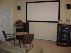 We were able to wire everything up with an excellent quality HDMI 15 meter SHR cable from DVIGear. DVIGear has been making some incredible cables that break all known barriers for being able to carry video over longer distances. In our viewing tests, we saw no visible degradation from the use of the 15m cable they supplied. While the screen in this room is actually smaller than Reference System 3, the viewing distance is a bit closer. As a result, the perceived size is actually that of a somewhat larger screen. With the Yamaha LPX-510 3LCD projector driving the action, even though guests are sitting at a distance of only 1.5 times the screen width, this system yields outstanding picture resolution. LCD pixel spacing at this distance is just at the threshold of being unnoticeable. The Canton CD Series loudspeakers and powered down-firing AS200 SC subwoofer currently being reviewed in this system should also lend some intense realism to what is sure to be a bone-crunching game.