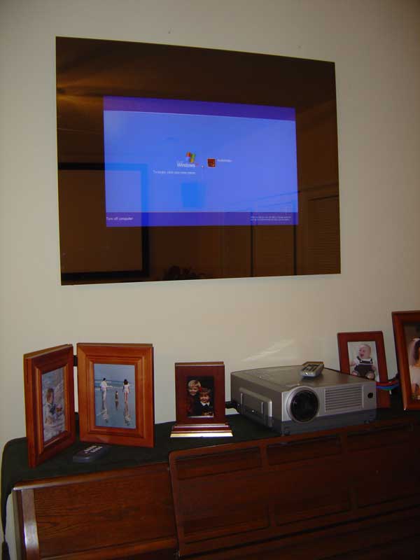 I decided to hang Ad Notam's 30" LCD Magic Mirror on the rear wall of the main viewing area (Zone 1). This TV is just plain cool and I wanted to create the effect that everywhere you looked you still see elements of the game. This display is wired up to Reference System 3's H TP C and provides access to statistics and information from Superbowl.com as well as access for guests to follow-up with websites that might be tied to the game or commercials. A Gyration wireless RF Media Center Remote & Keyboard allows guests to browse the web at their convenience from anywhere in the room - just pick up the keyboard and go. With a native resolution of 1280 x 768, this screen has plenty of real estate to complement the live action with fun online, real-time content - like voting for the game's MVP.