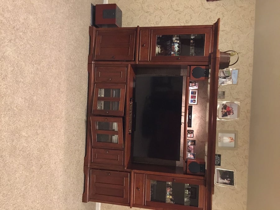 The Boston Acoustics system + entertainment unit w/55” Panasonic TV, originally in family room